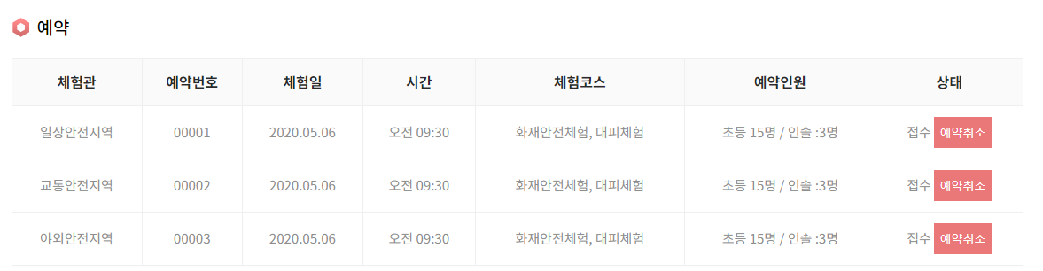 예약취소 및 신청제한기간단체영역체험 예약 확인 및 취소단체영역체험 예약 확인 및 취소
